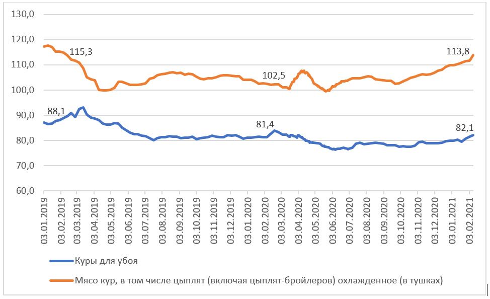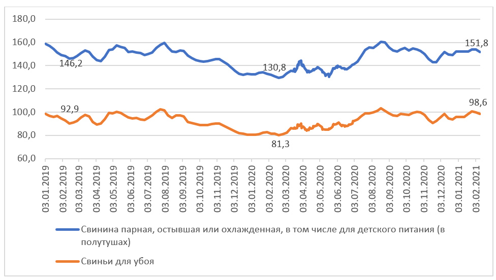 «На сегодняшний день цены производителей свинины и курицы находятся в рамках трёхлетнего диапазона и ниже среднегодовой инфляции», – также сообщили в пресс-службе.