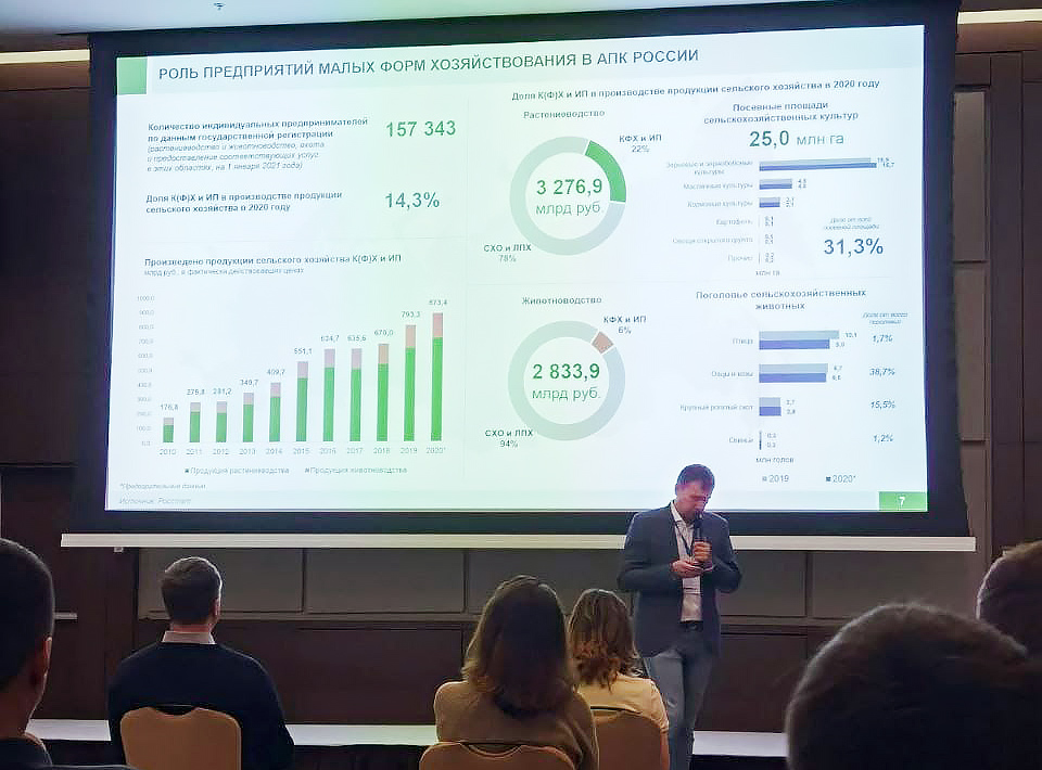 Доля продукции крестьянских (фермерских) хозяйств и индивидуальных предпринимателей в структуре производства продукции сельского хозяйства за десять лет увеличилась вдвое. Малые формы хозяйствования (МФХ) сейчас занимают важное место в структуре АПК, причем по производству некоторых видов продукции, таких как, например, картофель и баранина, являются явными лидерами. На их долю в России приходится около 22% производства продукции растениеводства и 6% — животноводства. Об этом сообщил руководитель ФГБУ «Центр Агроаналитики» Дмитрий Авельцов на форуме N-Tech Forum Sochi 2021: Retail and FMCG: тренды, технологии, решения.